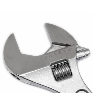 Crescent Adjustable Wrenches feature a large knurl for easy adjustment and a tight jaw fit. Its hex jaw design helps reduce slippage and tightly grips the fastener for solid, secure operation, while the corrosion-resistant chrome finish helps prevent rusting. A wide handle design provides comfort and reduces fatigue during extended use, ideal for both pros and do-it-yourself enthusiasts.
