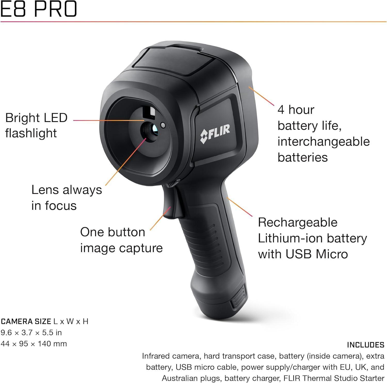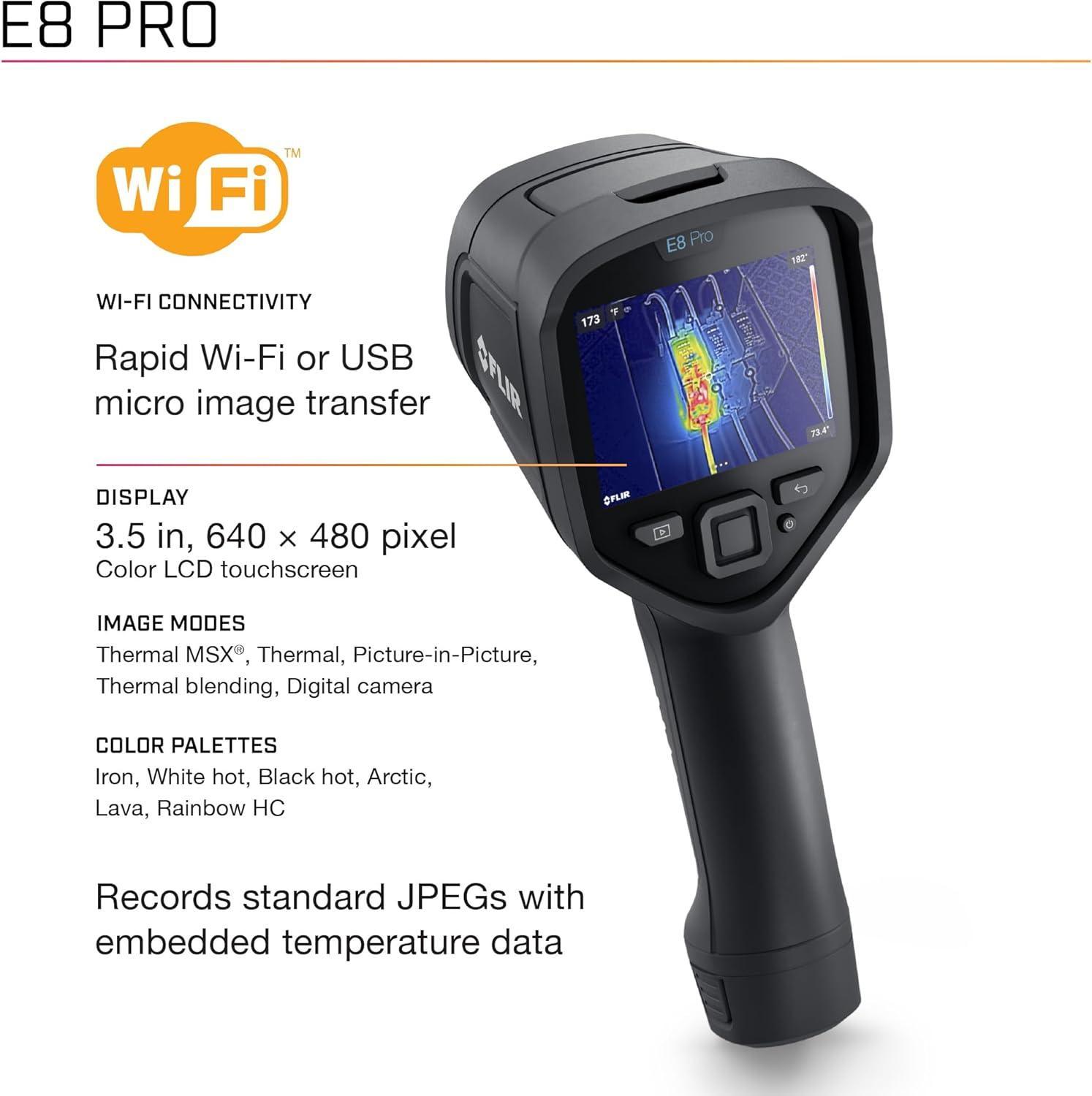 FLIR E8 Pro Commercial Thermal Imaging Camera with Wifi. High Resolution Infrared Cameara with FLIR Ignite Cloud