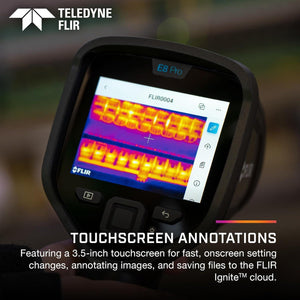 The FLIR E8 Pro is your must-have tool for locating and diagnosing electrical, mechanical, and building problems. Quickly pinpoint hot spots and easily identify problems with vibrant thermal imagery supported by FLIR-patented MSX (Multi-Spectral Dynamic Imaging) enhancement. Your inspections will be more efficient because you can do all your work from the touchscreen: organize your photos, add detailed notes, and upload them directly to the FLIR Ignite cloud for convenient access from any device. When you’re ready to share images and create client reports, your images and notes are already available for your use in FLIR Ignite or FLIR Thermal Studio for the most streamlined experience.