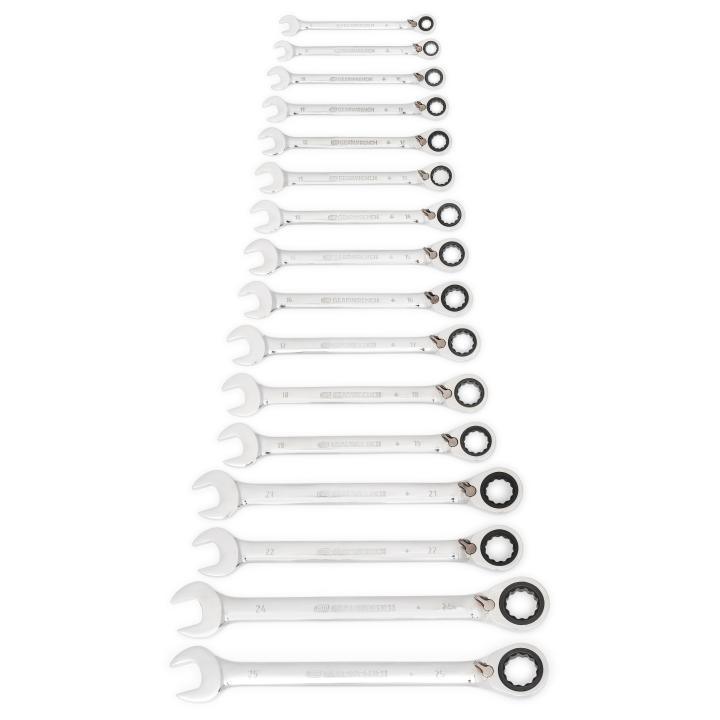 GearWrench 9602N - 16 Piece 72-Tooth 12 Point Reversible Ratcheting Combination Metric Wrench Set