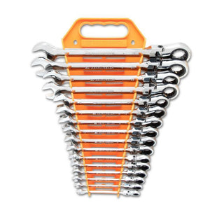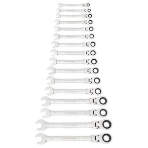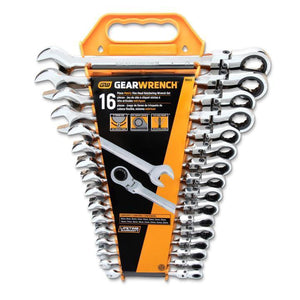 GearWrench 9902D - 16 Piece 72-Tooth 12 Point Flex Head Ratcheting Combination Metric Wrench Set