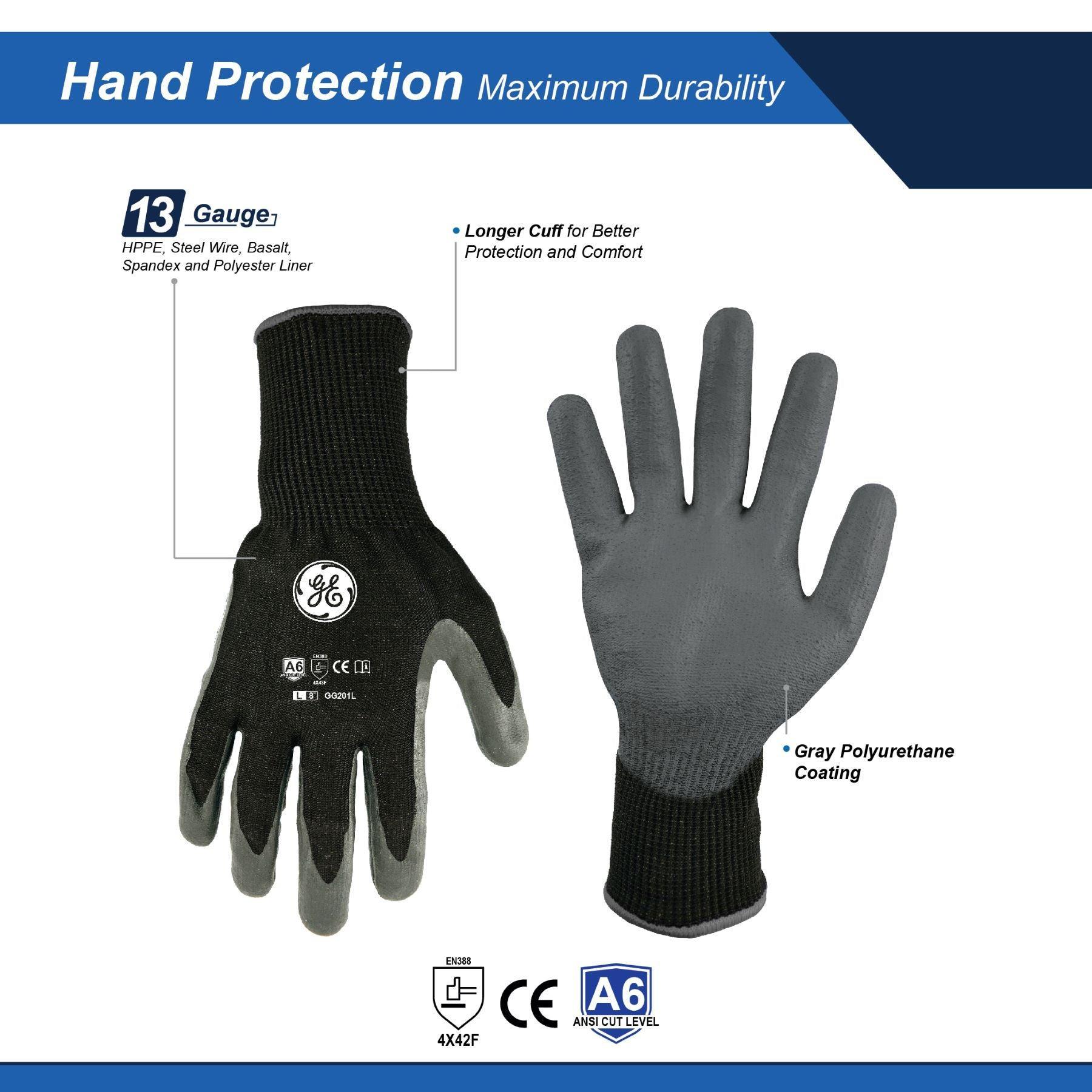 General Electric 13 GA PU Dipped Gloves A6 cut resistant gloves Unisex (GG201)