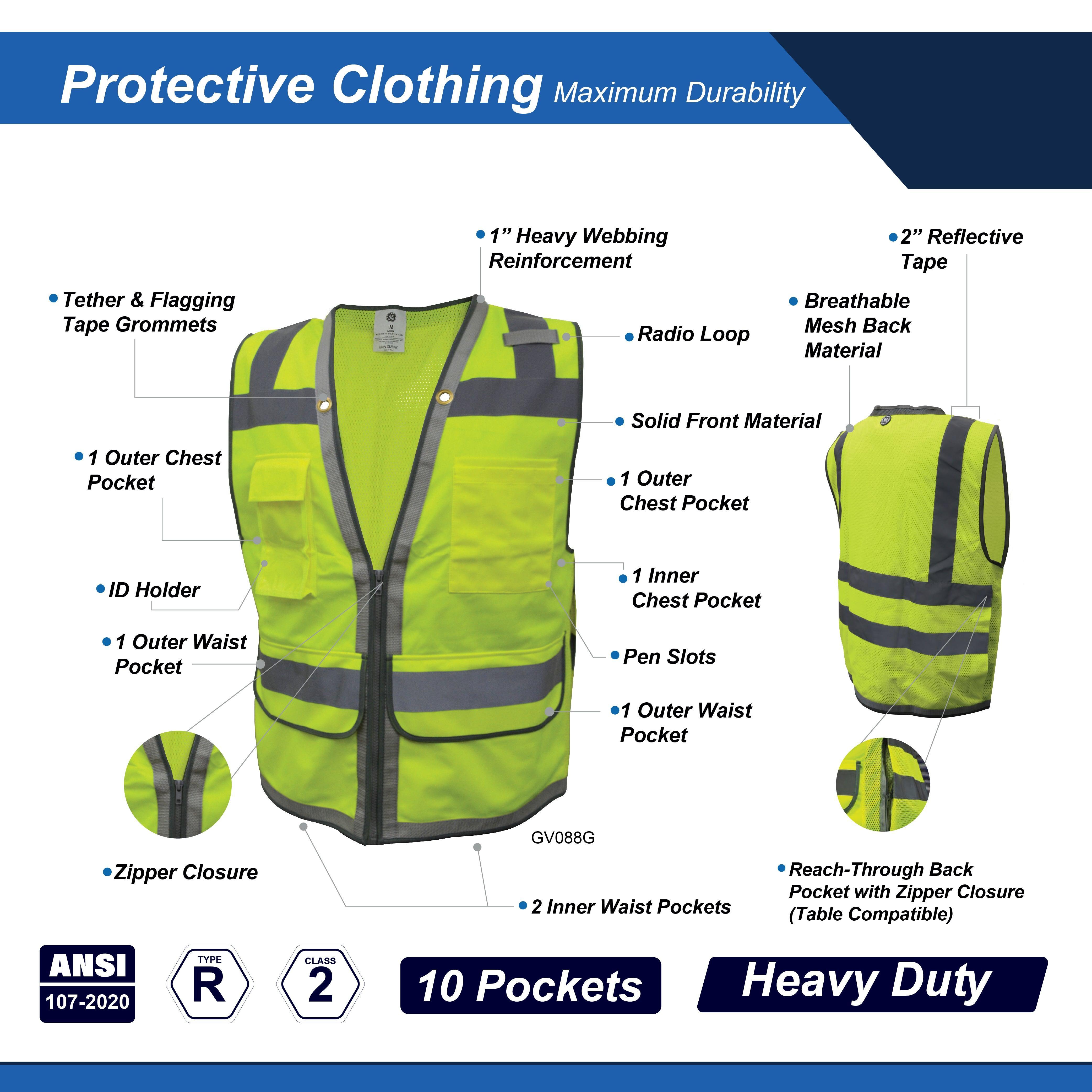 General Electric Heavy Duty Surveyor Safety Vest – 10 Pockets (GV088)