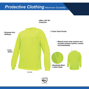 Our Hi-Vis Long Sleeve Shirt, made from polyester birdseye fabric, features breathable mesh on both sides. This long sleeve shirt is designed to wick away moisture and decrease heat stress, providing extreme comfort, coolness, and breathability. Additionally, it offers UPF 40+ protection. This high-visibility shirt can be used for construction, logistics, road crews, warehousing, and more.