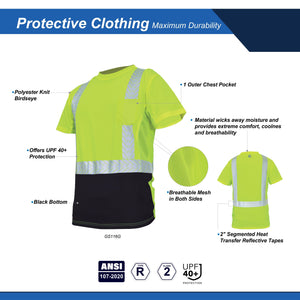 Our Hi-Vis Short Sleeve Shirt, made from polyester birdseye fabric, features exclusive 2″ reflective tapes and breathable mesh on both sides. This short sleeve shirt is designed to wick away moisture and decrease heat stress, providing extreme comfort, coolness, and breathability. Additionally, it offers UPF 40+ protection. This high-visibility shirt can be used for construction, logistics, road crews, warehousing, and more.