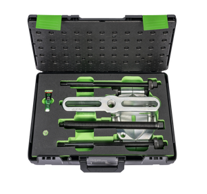 The 15-piece separator set 7 is used for pulling ball bearings, roller bearings, inner rings, and other flat-lying parts in crafts, industry, and workshops when there is insufficient space for puller jaws. The separating and pulling process is capable of initially separating those parts gently before they can be pulled out externally. This 4-piece set includes one separating device and one pulling device, as well as a pair of extensions, ensuring the full range of applications is covered.