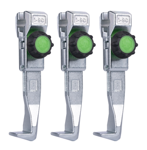 The set of three quickly adjustable standard jaws is suitable for 3-jaw universal pullers. The robust jaws guarantee particularly secure removal of bearings, gears, and disks. The green hand knobs provide maximum operating comfort and enable - even with wet or oily hands - a quick, tool-free loosening or fastening of the jaws.