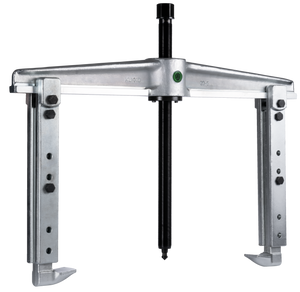 The 2-jaw universal puller with adjustable reach is used for removing bearings, gears, and discs in all common sizes for crafts, workshops, and industry. The 20-5 is the largest of its kind worldwide and thus the most powerful puller of the 20 series. It can loosen any component that sits on a shaft and is accessible from the outside. The puller adapts to every pulling situation due to its individually adjustable spread and reach and guarantees particularly safe, non-destructive disassembly both for external extraction and internal extraction.