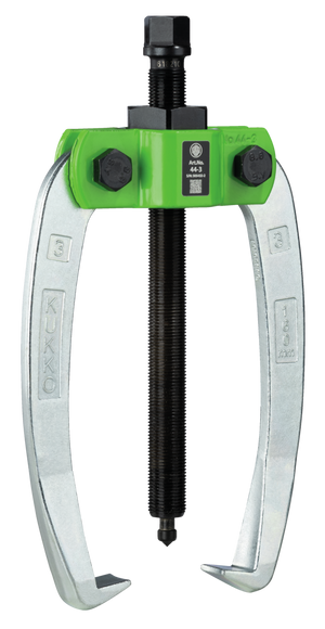 The handy 2-jaw industrial puller with force-amplifying and self-centering jaws is used for pulling bearings, gears, and discs in all common sizes for craft, workshop, and industry. It allows for the removal of any component seated on a shaft and freely accessible from the outside. When the spindle pressure is built up, the part to be pulled is increasingly gripped tighter by the interconnected jaws.