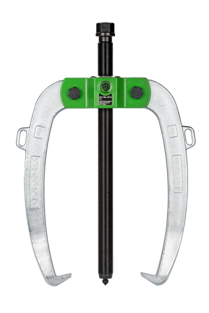 The handy 2-jaw industrial puller with force-amplifying and self-centering jaws is used for pulling bearings, gears, and discs in all common sizes for craft, workshop, and industry. It allows for the removal of any component seated on a shaft and freely accessible from the outside. When the spindle pressure is built up, the part to be pulled is increasingly gripped tighter by the interconnected jaws.