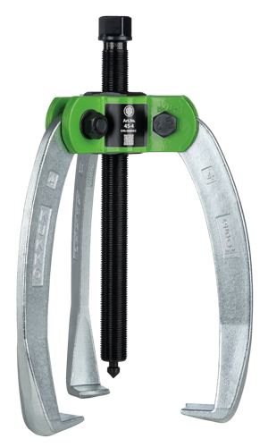 The compact 3-jaw industrial puller with force-amplifying and self-centering jaws is used for pulling bearings, gears, and discs in all common sizes for crafts, workshops, and industry. It allows for the loosening of any component that sits on a shaft and is freely accessible from the outside. When the spindle pressure is built up, the part to be pulled is increasingly gripped by the interconnected jaws. The 3-jaw design ensures an even load distribution, providing a particularly secure hold on the part to be removed.
