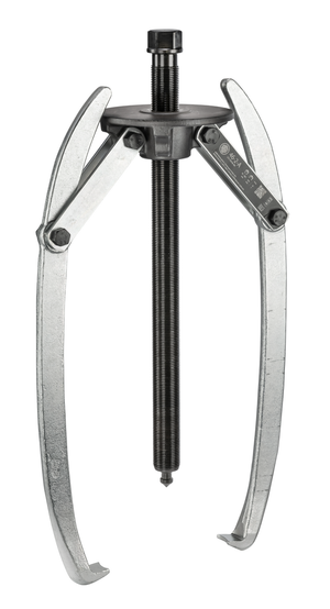 The heavy, 2-jaw universal puller with swiveling jaws and combination crossbar is used to extract large bearings, gears, and discs in all common sizes for crafts, workshops, and industry. It allows for the loosening of any component that sits on a shaft and is accessible from the outside. The swiveling jaws also ensure maximum freedom of movement for individual adjustment to the respective spread and depth, even in constrained environmental conditions. Thanks to the combination crossbar, the puller can be used as both a 2-jaw and a 3-jaw puller.