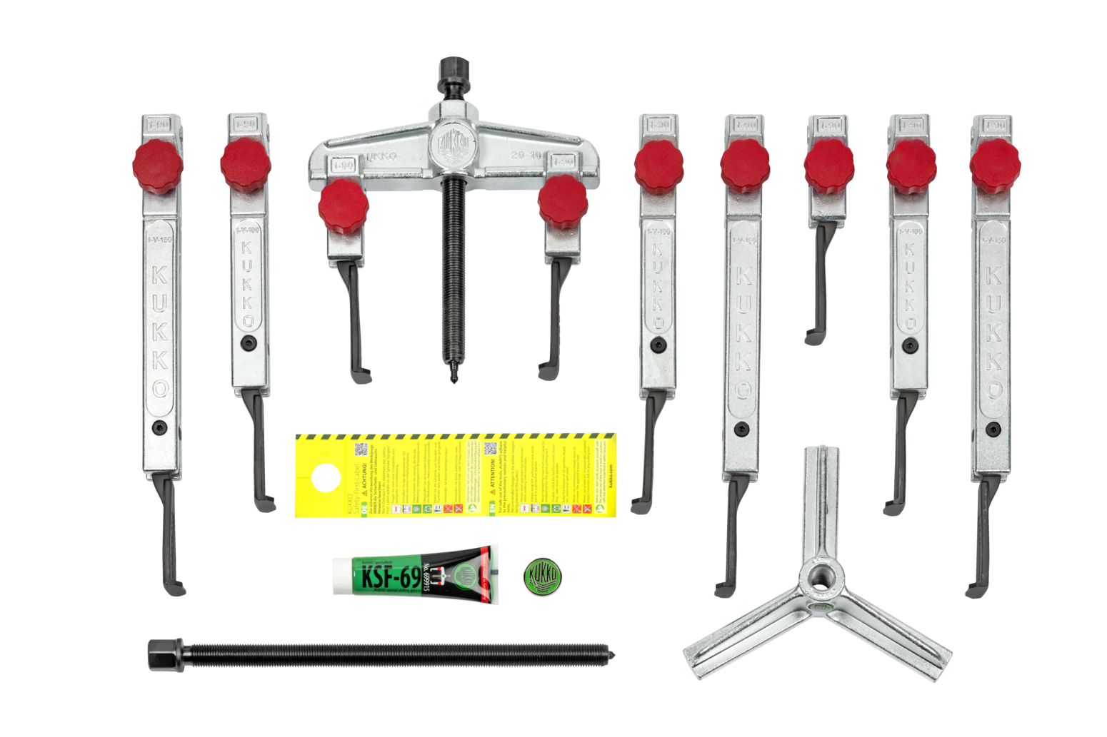 Kukko K-2030-10+S-T 13-piece universal puller set (2-jaw and 3-jaw) with extremely narrow, quick-adjusting jaws
