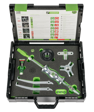 The universal puller with slide hammer is used to pull off gears, ball bearings, bearing rings, sealing rings and other parts in confined spaces, e.g. on aircraft, ships or electric cars. The universal puller can be used not only for external extraction, but also for internal extraction and for removing parts with threaded holes. The use of a universal puller with slide hammer is particularly recommended when there is no support surface or it is too sensitive. The ergonomically shaped, solid sliding piece allows the applied force to be optimally transmitted and a strong shock effect to be achieved. This also ensures contact-free and gentle extraction.
