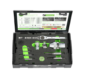 The 10-piece, ready-to-use screw extractor set from the K-49 series with fine ribbed shape is used for extracting broken bolts and screws with right-hand thread. Ideal for screws with a thread diameter of 4 to 20 mm. The set contains six screw extractors, a ratchet, two chucks, and an adapter, making it ready for immediate use. The screw extractors are an indispensable tool that neither hobbyists nor professional craftsmen can do without.