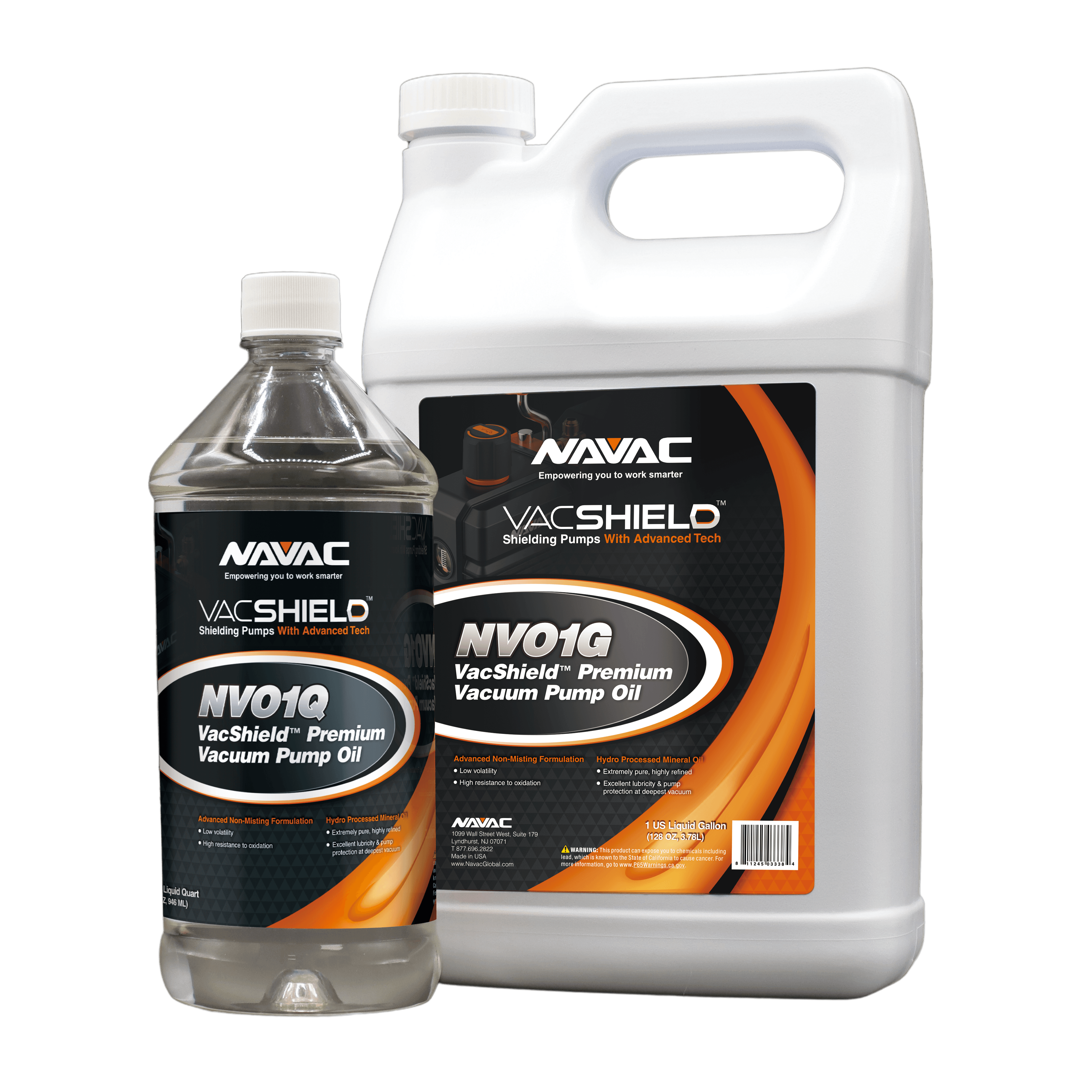 Proud to introduce NAVAC VACSHIELD Premium Vacuum Pump Oil. This advanced product features a minimal misting formula that guarantees low volatility and high resistance to oxidation. Created from hydro-processed mineral oil, it boasts exceptional purity and refinement. Its excellent lubricity provides optimal protection for your pump, even at the deepest vacuum levels. Plus, its wide applicability makes it a perfect fit for most vacuum pumps on the market.