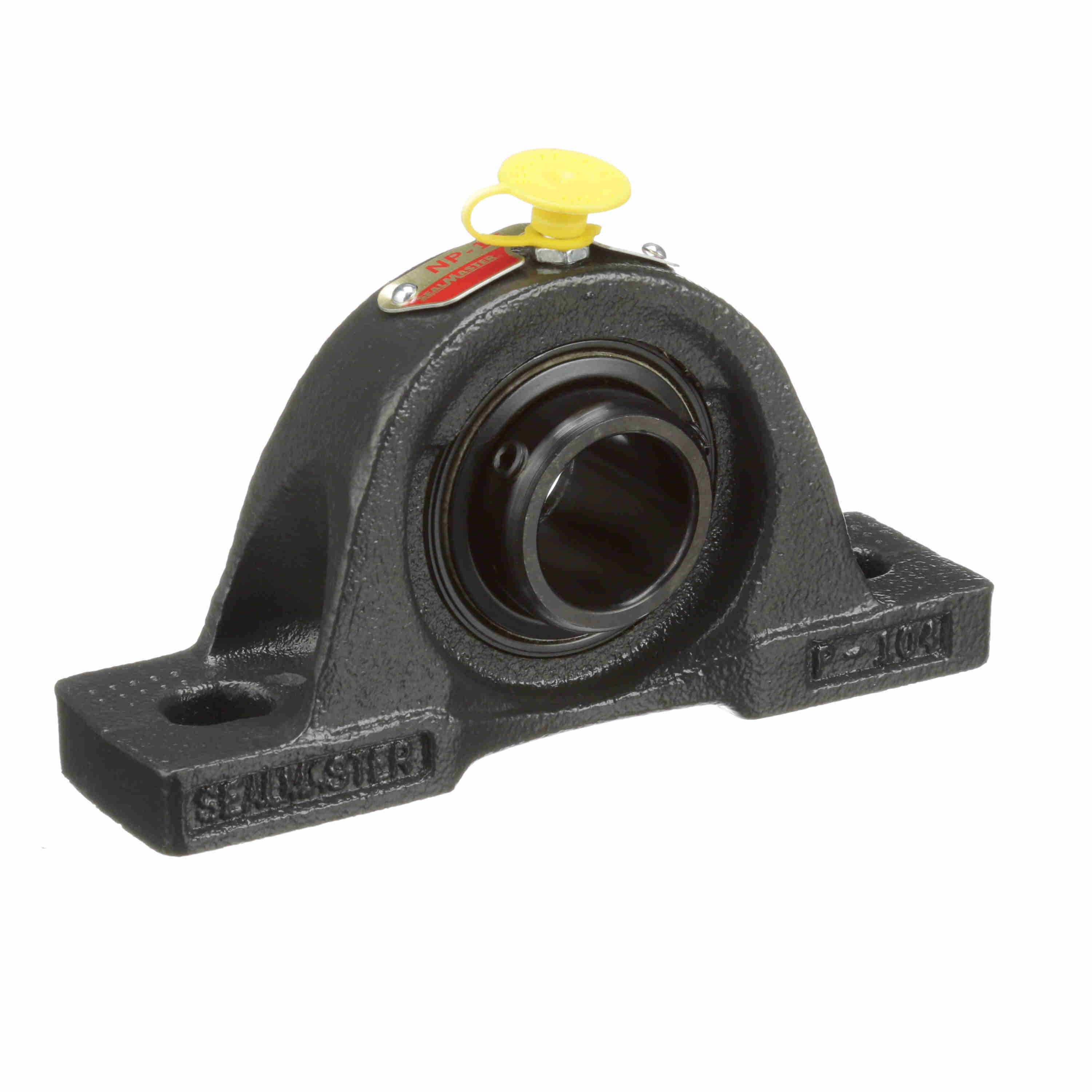 The Sealmaster Mounted Cast Iron Two Bolt Pillow Block Ball Bearing is a robust, ready-to-mount bearing unit designed for reliable performance in normal to medium-duty applications. Featuring a solid one-piece cast iron housing, this pillow block ensures maximum strength and rigidity. The bearing insert, crafted from 52100 bearing steel with a black oxide coating, provides excellent corrosion resistance and durability. It utilizes a setscrew locking collar or Sealmaster’s exclusive Skwezloc® concentric locking collar for secure shaft attachment, minimizing slippage. The unit includes felt seals to protect against contaminants and retain lubrication, with a relubricatable design for extended bearing life. The two-bolt base allows for straightforward installation, supporting radial or radial-and-thrust loads. With a wide range of bore sizes and configurations, this bearing is ideal for applications such as conveyors, industrial machinery, and material handling systems. Sealmaster’s innovative features, like the lock pin and dimple system, enable direct lubrication and prevent outer ring rotation, ensuring optimal performance and reduced maintenance.