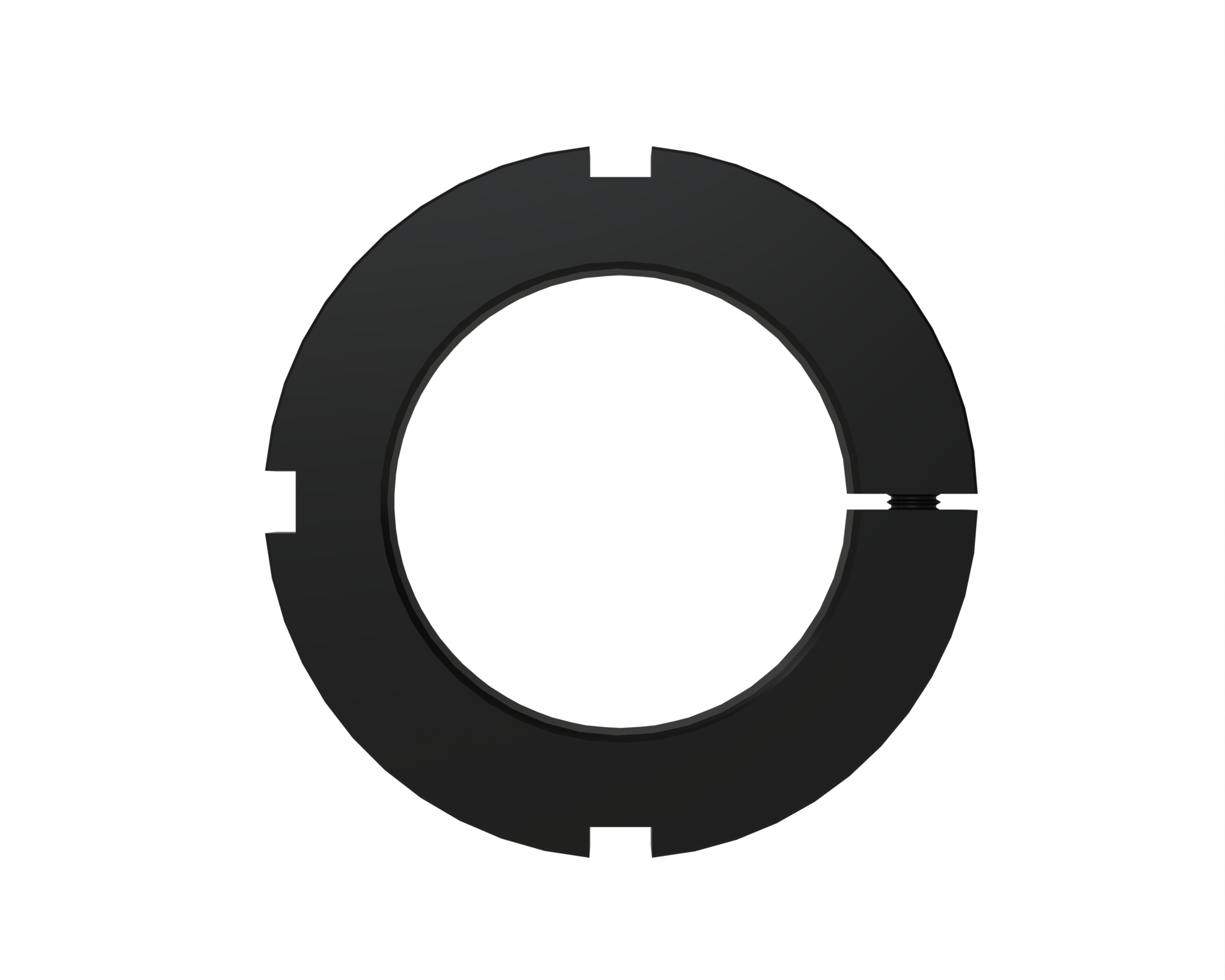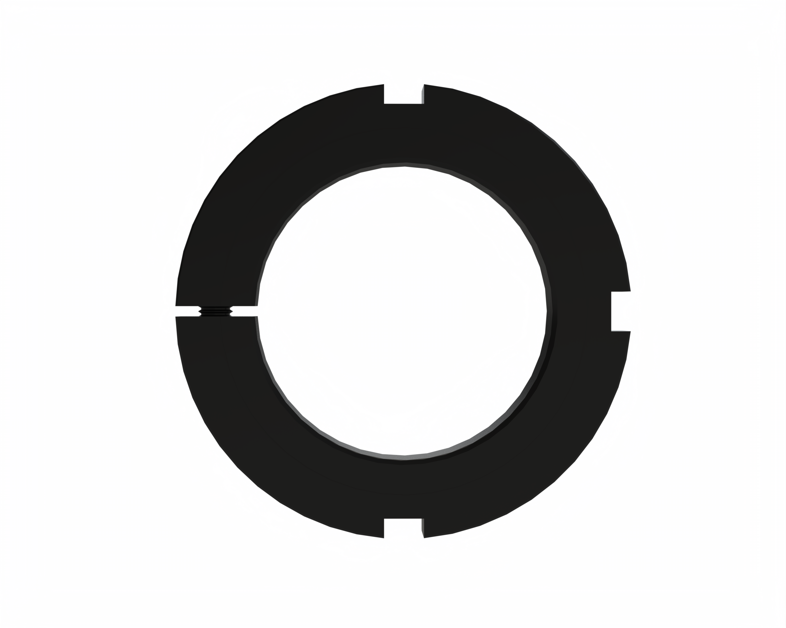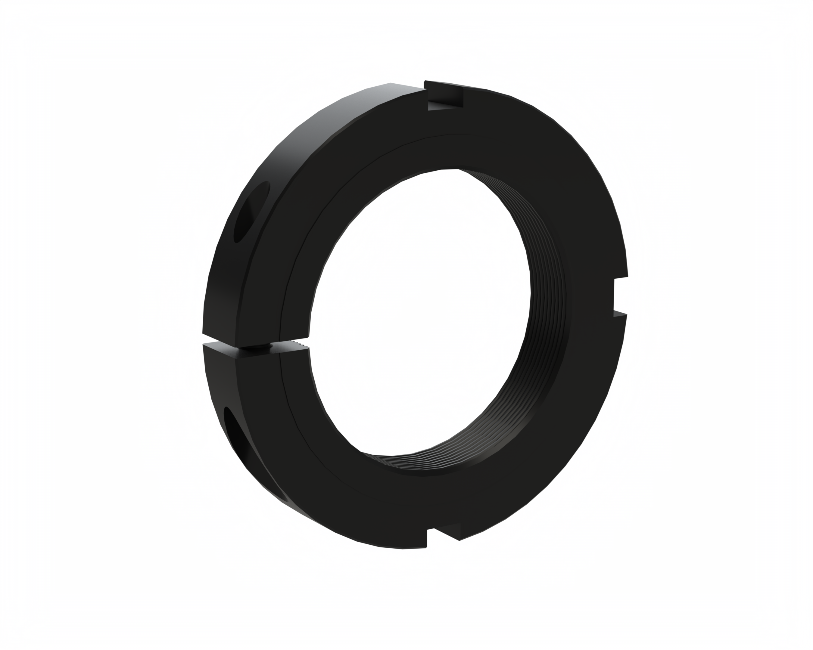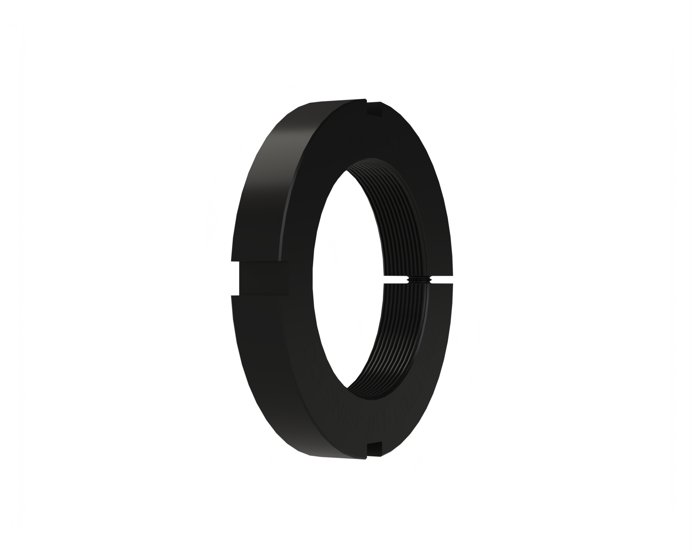 This series of CLAMP NUTS has threads specified as COARSE under the Unified system of threads designed unifying the original American National design and the United Kingdom Whitworth design for inch dimensioned threads. This unified system brought about general interchangeability of threads achieved through the standardization of thread form, diameter-pitch combinations and limits of size. Under the Unified system, however, the pitch diameter tolerance of the internal thread is uniformly 30% greater than that of the external thread. Thus the clamping does not align as squarely to the axis of the drive mechanism as does the bearing series.