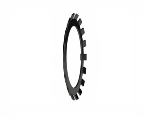 This lockwasher, in contrast to lockwashers of inch design does not have a bent key and the key is shorter.