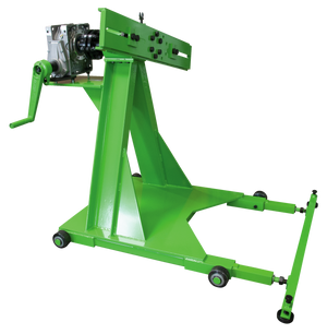 The motor assembly stand of the W-6067 series is used for one-sided support of various engines in industrial and workshop environments. It consists of 1 driven bearing block, 1 clamping rail with a disc, tabs, and screws, as well as 1 support arm and is suitable for different engines thanks to replaceable clamping jaws.