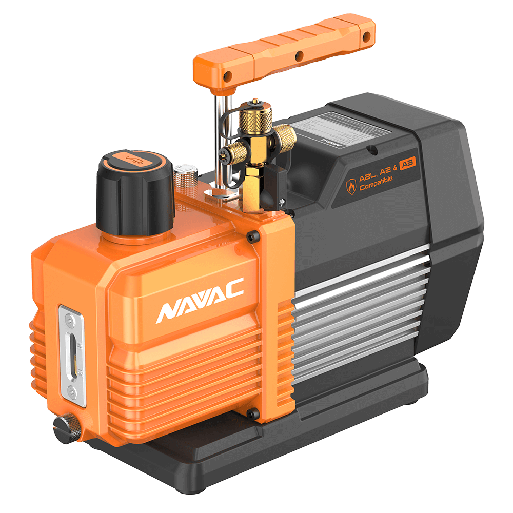 Designed with corrosion-resistant pump parts and stainless steel inlet port makes the pump suitable for ammonia (R-717). The dual-stage rotary vane pump and inverter motor lead to faster evacuation and a deeper vacuum.