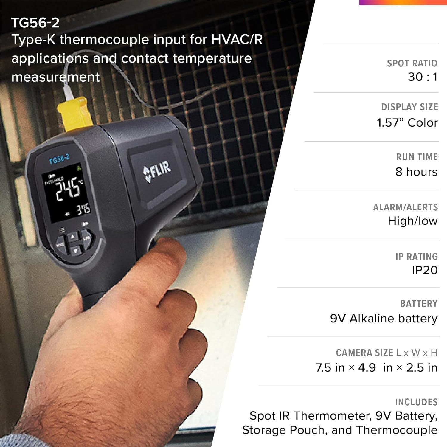 FLIR TG56-2 Infrared Spot Thermometer with Digital Readout: for Non-Contact Temperature Measurements up to 2,372 Degrees F