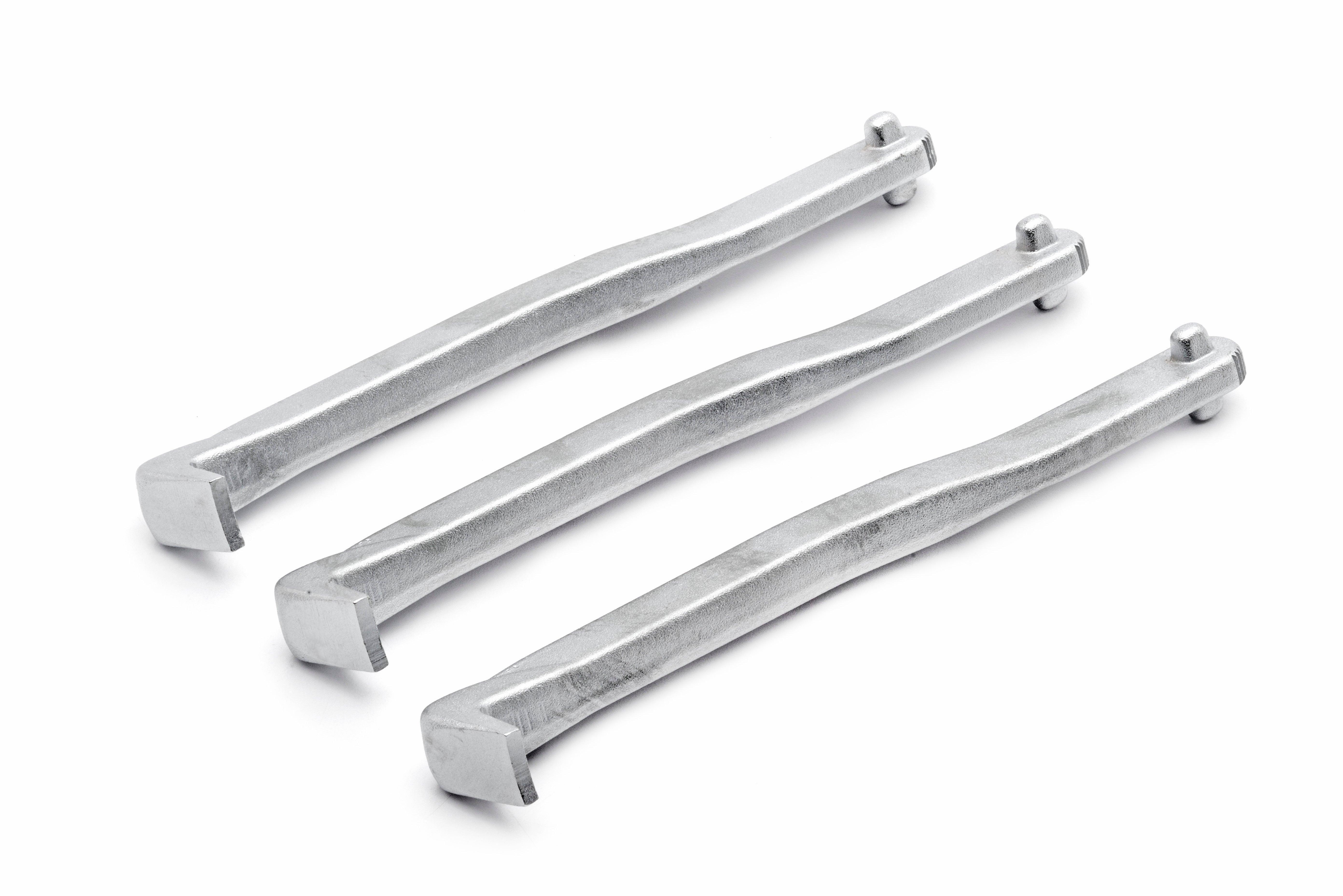 | Legs index into position and stay in place, letting you easily support the puller and quickly connect each jaw one at a time to the pulley without help |