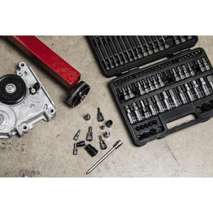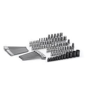 The GEARWRENCH 84 piece master hex and Torx® bit socket set includes the most popular sized hex, ball end hex, Torx® bit sockets, External Torx® sockets, and Tamper-proof Torx® bit sockets. The set is contained in a blow mold case for storage and organization. Our sockets are manufactured from alloy steel and are heat treated for maximum durability. The bits are manufactured from S2 steel. The tools in this set are intoned to be used with manual tools only.
