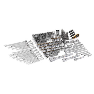 GEARWRENCH mechanics tools have all been designed with the professional user in mind to increase productivity, access, and strength. The ratchets, sockets, and wrenches are made from premium alloy steel and feature a full polish chrome finish. The 80972 is a 243 piece 1/4 in., 3/8 in. and 1/2 in. drive set that features 12 point sockets in both SAE and metric sizes. Also included in the set are 90 tooth ratchets in 1/4 in., 3/8 in. and 1/2 in. drives, various drive tools, 12 point combination wrenches and bit sockets. The set is furnished in a 3 drawer blow mold storage box for storage and organization.