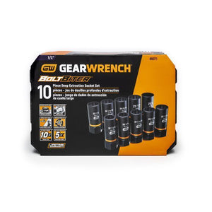GearWrench 86071 - 10 Piece 1/2" Drive Bolt Biter™ Deep Extraction Socket Set