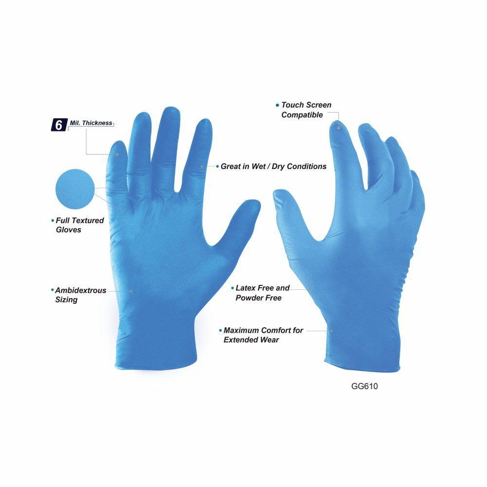 General Electric Blue Disposable 6 Mil. Heavy Duty Nitrile Gloves Unisex 100 Pairs (GG610)