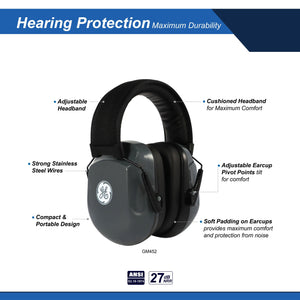 Our compact protective earmuffs are made from high impact resistant ABS. With an adjustable and cushioned headband, adjustable earcup pivots points that tilt for comfort, and polyurethane ear cushion foam pads, this protective earmuff offers up to 27dB of coverage.