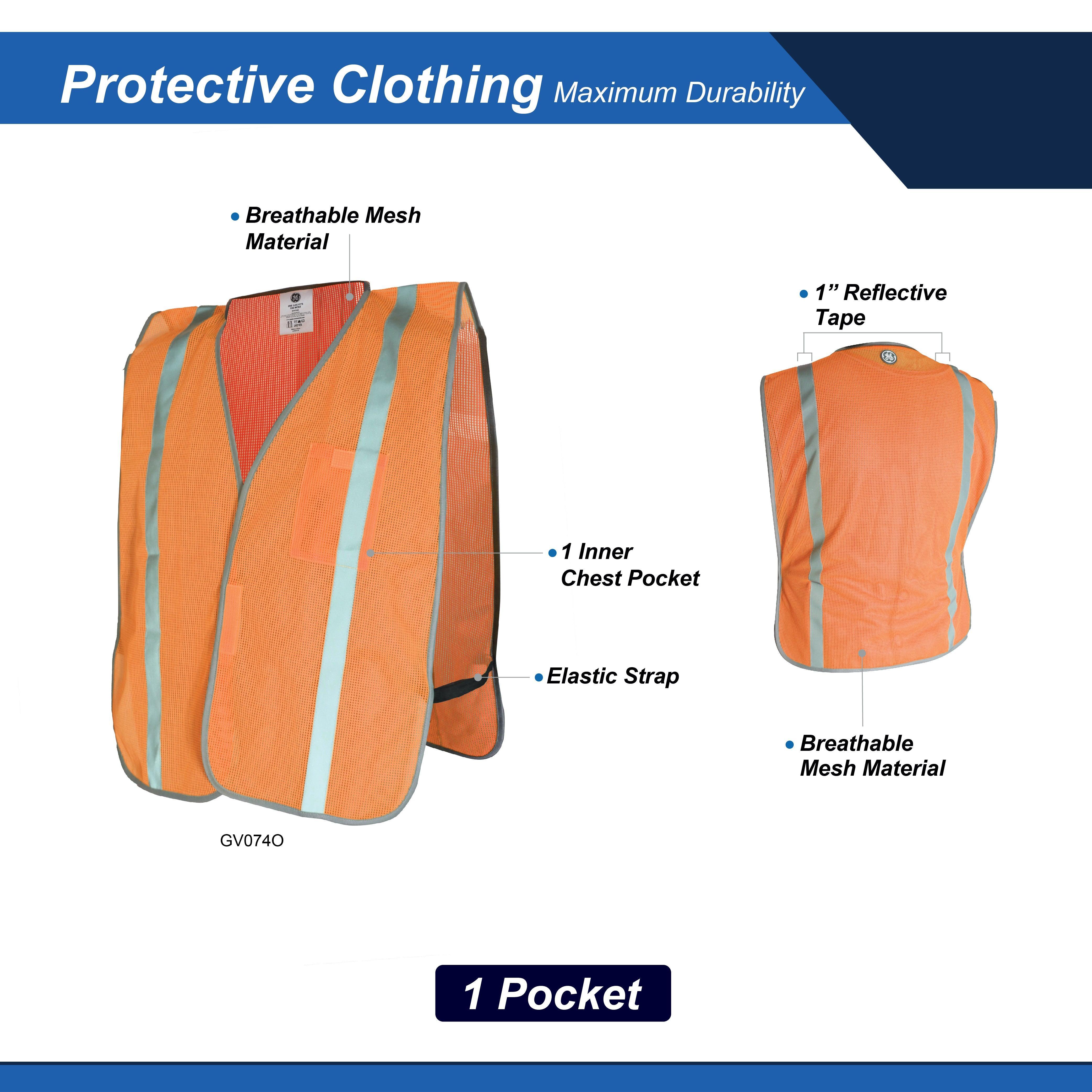 General Electric Orange Safety Vest, Inner Pocket, W/Elastic strap, One Size (GV074O)