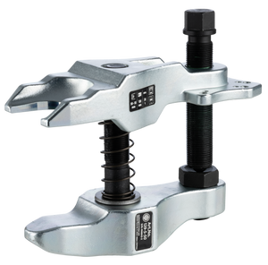 The 2-jaw puller for heavy trucks of the series 129 is used for mechanically pressing out the ball studs when removing ball joints on thrust and steering rods. The series 129 impresses with its versatility of applications. Within the series, there are different sizes of ball joint presses with varying jaw openings. The lever clamping range can be adjusted via the thread of the center spindle.