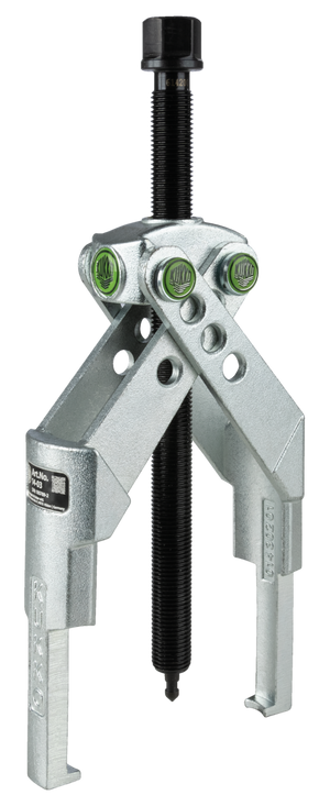 The 2-jaw puller with narrow, self-gripping, intersecting jaws is used for extracting sprockets, pulleys, bearings, and similar components in tight spaces. Self-locking retaining pins ensure quick and easy adjustment for variable span ranges. The puller is self-gripping and easy to handle. During the extraction process, the scissor-like arm guidance presses the claws firmly against the part being pulled. This ensures a secure grip at all times.