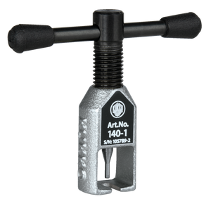 The micro puller is used for removing speedometer cables, pressure gauges, clocks, and similar parts. Especially in model making, the small parts puller is a helpful and reliable tool. The handy and space-saving model features narrow jaws that are particularly suitable for tight, hard-to-reach areas. The freely movable pin on the T-handle ensures comfortable one-handed tightening of the spindle in cramped spaces. The spindle tip can be easily replaced using a magnetic closure.