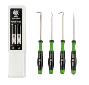 The Picks & Hooks with 2K comfort grip in the set are used for loosening stuck seal rings, separating cables in a wiring harness, and other tasks in sanitation and automotive. The Picks & Hooks of series 177 allow for sensitive and powerful working due to their two-component grip and high-quality processing.