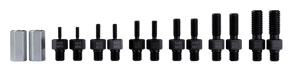 The thread adapter set of model series 18-AS is used together with the pullers of model series 18 for removing and pulling components with threads, such as dowel pins, keyways or bolts, in crafts, industry and workshops. The separation-pulling process is capable of gently separating those parts first before they can be externally pulled off.