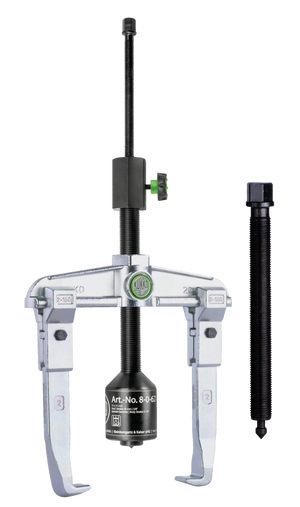 The 2-jaw universal puller with adjustable jaws and hydraulic spindle is used for the particularly safe removal of extremely tight bearings, gears, and discs in all common sizes for trades, workshops, and industry. The hydraulic spindle achieves an average pulling force of up to 15 t. This allows you to loosen any component that is seated on a shaft and is freely accessible from the outside. For pulling operations with a pulling force of up to 10 t and/or in confined spaces, the mechanical spindle can be used.