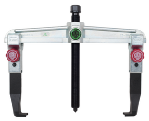 The 2-jaw universal puller with narrow, quickly adjustable jaws is used for the safe and user-friendly removal of bearings, gears, and discs in all common sizes for craft, workshop, and industry. This allows for the loosening of any component seated on a shaft and freely accessible from the outside. The narrow jaws ensure that even tight and hard-to-reach gaps can be accessed.