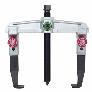 The 2-jaw universal puller with narrow, quickly adjustable jaws is used for the safe and user-friendly removal of bearings, gears, and discs in all common sizes for craft, workshop, and industry. This allows for the loosening of any component seated on a shaft and freely accessible from the outside. The narrow jaws ensure that even tight and hard-to-reach gaps can be accessed.