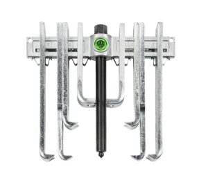 The 2-jaw universal puller Economy with a versatile combination puller jaw set is used for pulling bearings, gears, and discs in all common sizes in agriculture and workshops. It can loosen any component that is on a shaft and is freely accessible from the outside. The different lengths of the puller jaws allow the puller to be individually adjusted to the respective reach.