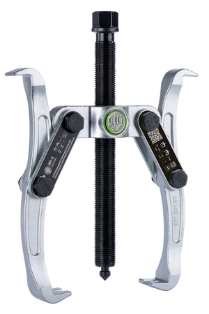 The 2-jaw puller with oscillating and reversible jaws is used for centric pulling of bearings, gears, and discs in all common sizes for craft, workshop, and industry. This allows for the loosening of any component that sits on a shaft and is freely accessible from the outside. The oscillating jaws with adjustable reach are applicable on both sides. Depending on the design, the claw shape varies.