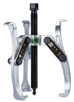 The 3-jaw puller with oscillating and reversible jaws is used for centralized extraction of bearings, gears, and discs in all common sizes for crafts, workshops, and industry. This allows the loosening of any component that sits on a shaft and is freely accessible from the outside. The oscillating jaws with adjustable reach can be applied on both sides. Depending on the design, the claw shape varies. The 3-jawed design ensures even load distribution and a particularly safe grip on the part being extracted.