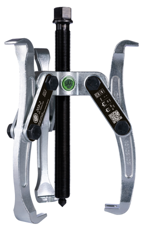 The 2-jaw and 3-jaw puller with crossbar features oscillating and reversible jaws and is used for centric pulling of bearings, gears, and disks in all common sizes for craft, workshop, and industry. This allows for the removal of any component that sits on a shaft and is freely accessible from the outside. The swiveling jaws with adjustable spread are applicable on both sides. Depending on the design, the claw shape varies. Thanks to the crossbar, the puller can be used as both a 2-jaw and 3-jaw tool. The 3-jaw configuration ensures an even load distribution and thus a particularly secure grip on the part being extracted.
