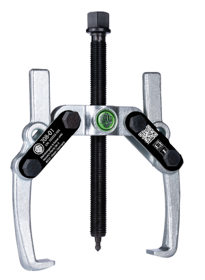 The 2-jaw puller "Economy" with oscillating and height-adjustable jaws is used for pulling bearings, gears, and discs in all common sizes for crafts, workshops, and industry. The oscillating and curved jaws adapt to any installation situation and are universally applicable due to the adjustable reach and spread.