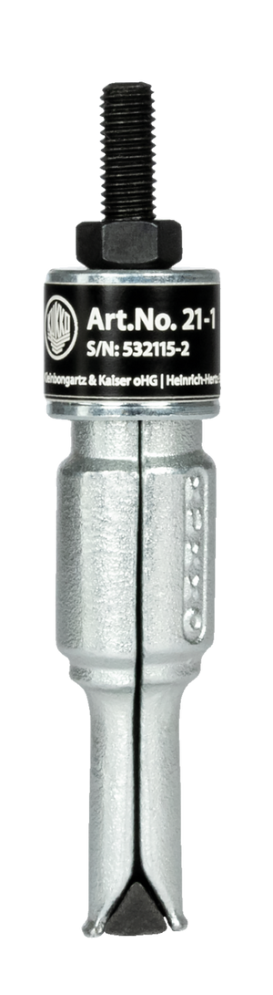 The internal extractors of the series 21 are used for pulling out internal bearings, bearing outer rings, and bushings in craftsmanship, workshops, and industry. The multi-shelled design of the internal extractors with their extra large gripping edges allows for the safe pulling out of internal components. The series 21 impresses with its compatibility and versatility of applications. Depending on the application, there are numerous variants of the optionally 2-jaw or 3-jaw internal extractors. They are used either together with counter stays or with sliding hammers.