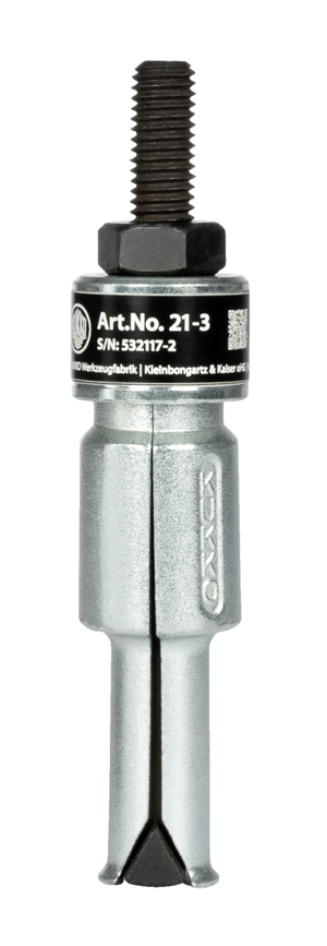 The internal extractors of the series 21 are used for pulling out internal bearings, bearing outer rings, and bushings in craftsmanship, workshops, and industry. The multi-shelled design of the internal extractors with their extra large gripping edges allows for the safe pulling out of internal components. The series 21 impresses with its compatibility and versatility of applications. Depending on the application, there are numerous variants of the optionally 2-jaw or 3-jaw internal extractors. They are used either together with counter stays or with sliding hammers.
