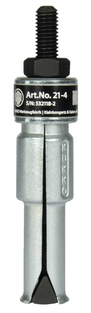 The internal extractors of the series 21 are used for pulling out internal bearings, bearing outer rings, and bushings in craftsmanship, workshops, and industry. The multi-shelled design of the internal extractors with their extra large gripping edges allows for the safe pulling out of internal components. The series 21 impresses with its compatibility and versatility of applications. Depending on the application, there are numerous variants of the optionally 2-jaw or 3-jaw internal extractors. They are used either together with counter stays or with sliding hammers.