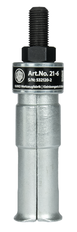 The internal extractors of the series 21 are used for pulling out internal bearings, bearing outer rings, and bushings in craftsmanship, workshops, and industry. The multi-shelled design of the internal extractors with their extra large gripping edges allows for the safe pulling out of internal components. The series 21 impresses with its compatibility and versatility of applications. Depending on the application, there are numerous variants of the optionally 2-jaw or 3-jaw internal extractors. They are used either together with counter stays or with sliding hammers.
